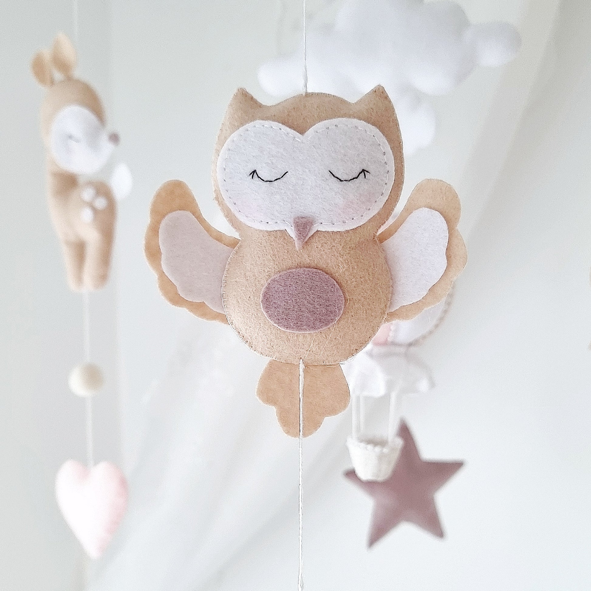 The soft hot air balloon rises quietly between the animals, carrying your baby’s dreams somewhere safe and peaceful. It’s the kind of mobile that doesn’t just decorate a room, it holds a feeling. A calm one. A magical one.