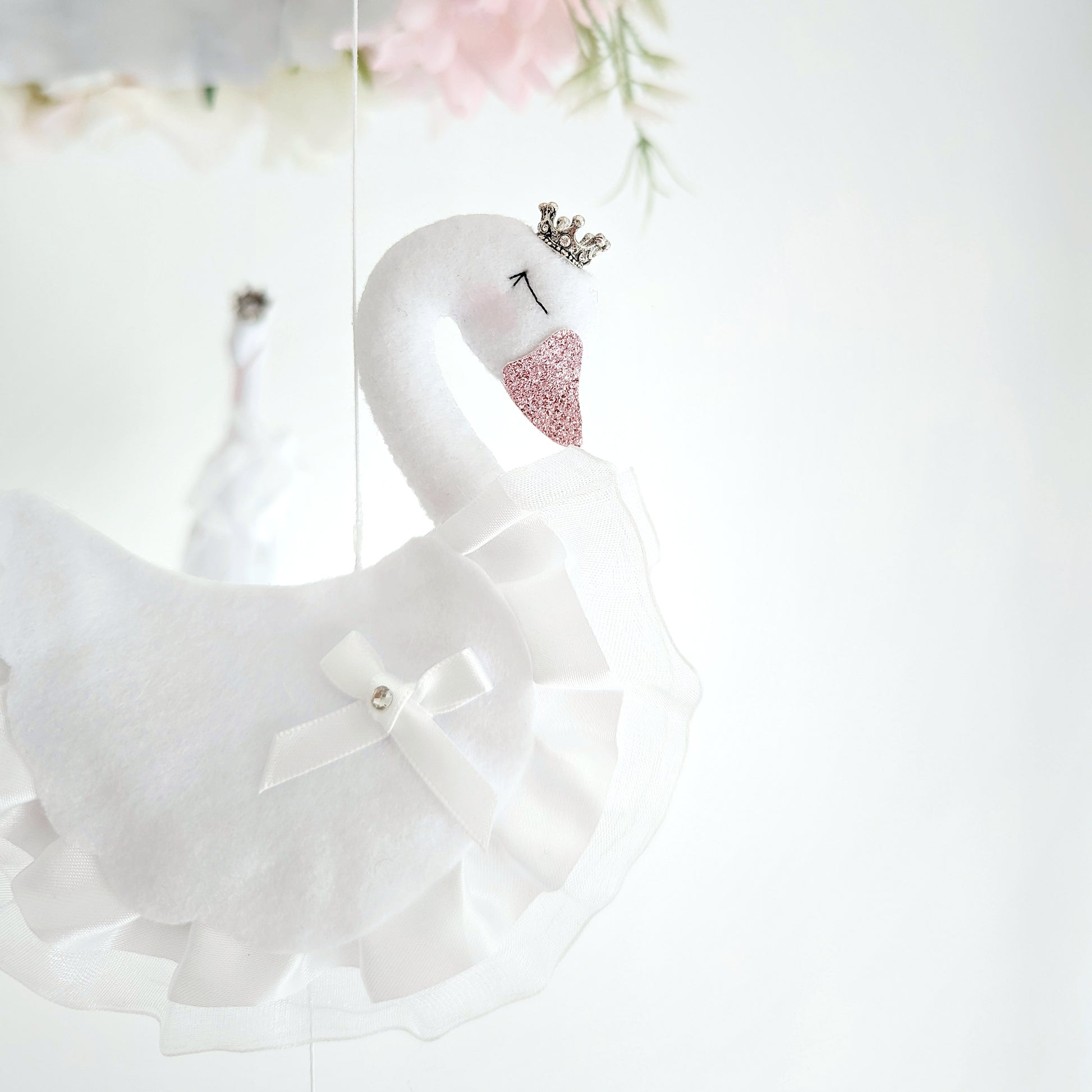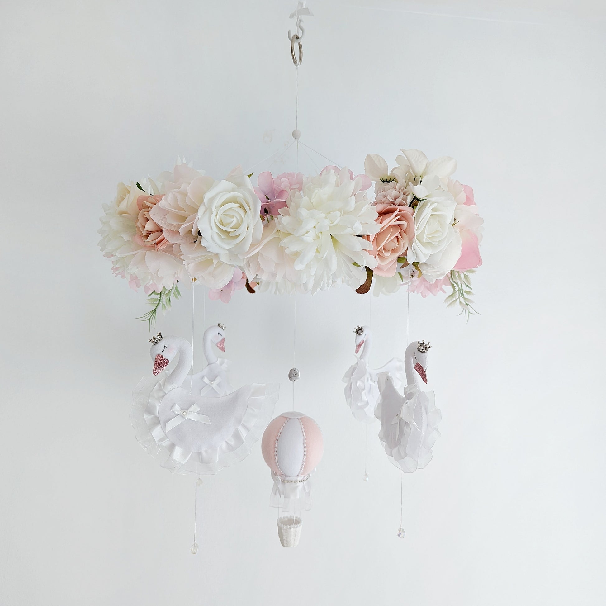 Swan Ballet in the Clouds - Luxury Baby Mobile with Blush Balloon and Floral Crown