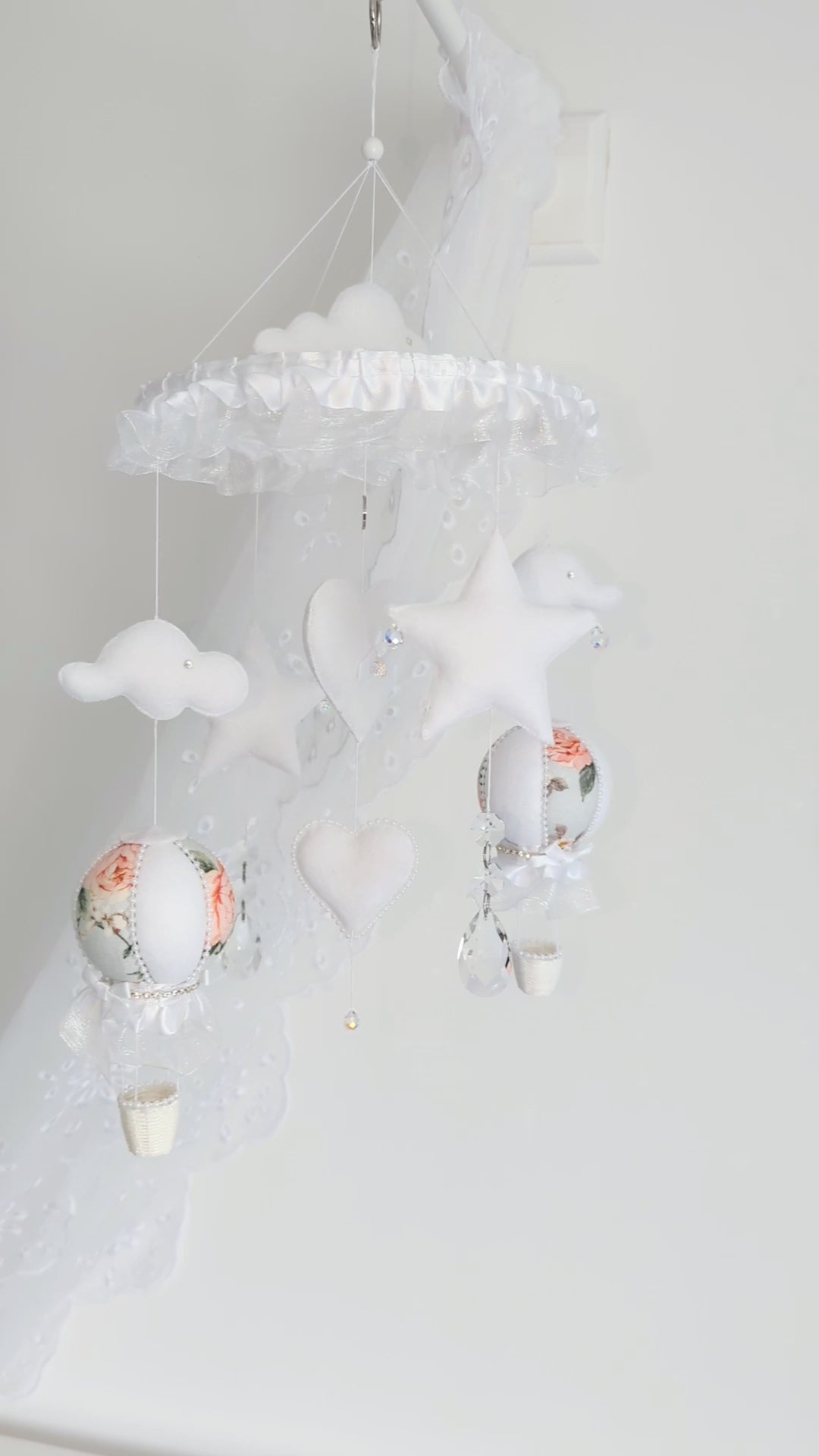 Float away into a garden of dreams with Vintage Rose Dreams, a lovingly handcrafted balloon mobile designed to fill your little one’s world with lightness, laughter, and wonder.